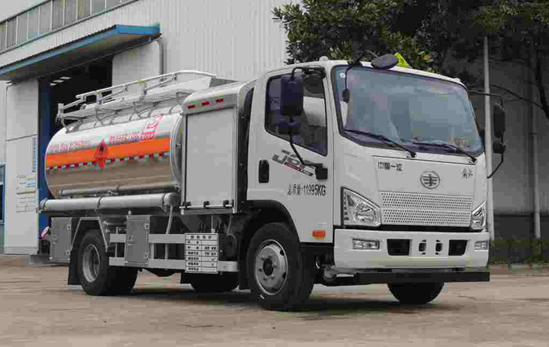 罐體有效容積:8.13立方米,危險貨物運輸車輛的類型為FL型,介質:航空汽油,航空煤油;類項號:3;加油裝置上置時,罐體尺寸(長×長軸×短軸)(mm)為:3800×1950×1400;加油裝置下置時,罐體尺寸(長×長軸×短軸)(mm)為:4700×1750×1250;僅采用3900mm軸距;隨底盤選裝駕駛室,選裝加油裝置下置,選裝箱門樣式;側、后防護裝置材料材質:Q235B,側、后防護均采用螺栓連接,后防護裝置斷面尺寸為(mm):80×150,后部防護離地高度:450mm;安裝具有衛星定位功能的行駛記錄儀;安裝排氣管前置,前盤制動,限速裝置,限速80km/h,僅采用底盤子午線輪胎;ABS生產廠家/型號:1.廣州瑞立科密汽車電子股份有限公司/CM4XL-4S/4M;2.浙江萬安科技股份有限公司/VIE ABS-II.轉向輪安裝爆胎應急防護裝置.