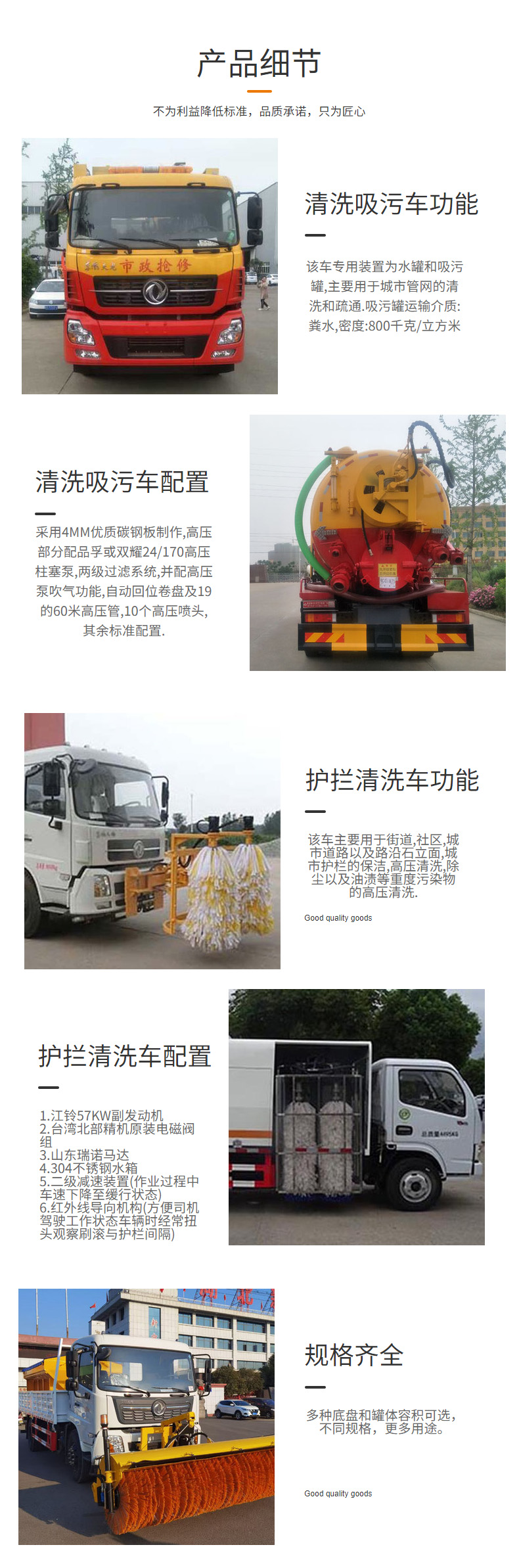 相關車型清洗車_清洗吸污車_護欄清洗車_路面養護車★13908669111★東風多利卡5噸清洗吸污車產品名稱:楚勝牌CSC5121GQW6型清洗吸污車,采用EQ1127SJ8EDC底盤改裝而成,該車主要用于下水道清洗及吸污并具有舉升功能,主要專用裝置為罐體和清洗吸污裝置。清洗吸污車集沖洗、疏通、吸污、反排功能于一體,它使用于各種液狀、半液態,以及各種溝渠下面的污泥、糞便、廢水等介質的抽吸、裝運、排卸之用,還可用于突發環境污染事故的應急處理。更多清洗車,清洗吸污車,護欄清洗車,路面養護車,除雪車盡在:m.serwongfun1895.com