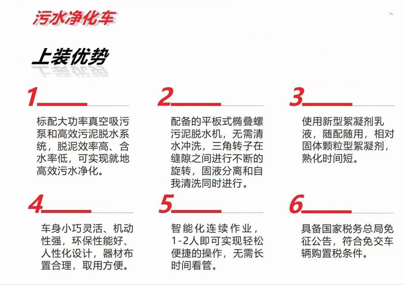 污水處理車/污水凈化車優勢亮點: