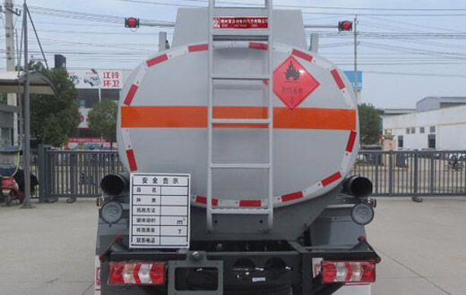 罐體有效容積:8.22立方米,危險貨物運輸車輛的類型為FL型,危險貨物類項號:3.罐體尺寸(長×長軸×短軸) (mm)為:4700×1750×1250;側、后防護裝置材料材質:Q235B,側、后防護均采用螺栓連接,后防護裝置斷面尺寸為(mm):80×150,后部防護離地高度:500mm;安裝具有衛星定位功能的行駛記錄儀,僅采用底盤子午線輪胎;加油機型號/生產廠家:CS20D1110F/正星科技有限公司;80YHCB-60/山東博山齊魯油泵廠;YHCB-1000/5-A/永嘉三江石油機械廠;YHCB-1000/5B/永嘉三江石油機械廠;YHCB-300/3-B-L/永嘉三江石油機械廠;ABS系統控制器型號/生產廠家:VIE ABS-Ⅱ/浙江萬安科技股份有限公司;排氣管前置,安裝前盤式制動器,限速裝置限速80km/h,轉向輪安裝爆胎應急防護裝置,該車型可選裝ETC車載裝置;