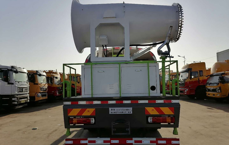 消防灑水車安裝消防車專用消防泵、消防炮、消防取力器。罐體后帶工作平臺,平臺上安裝綠化灑水炮,灑水炮可全方位旋轉,帶前沖后灑,帶側噴,可連續調成直流狀、霧狀、大雨、小雨、毛毛雨,帶安全護欄。罐體頂部安裝消防水炮。帶消防接口,可通過消防栓進水,帶自流閥,消防綠化卷盤。