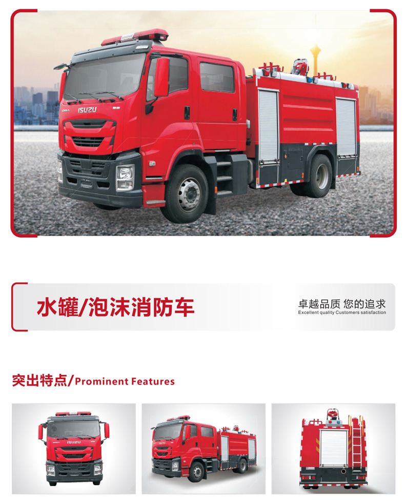 水罐消防車/泡沫消防車/化學救援消防車/搶險救援消防車/干粉水(泡沫)消防車功能說明:
