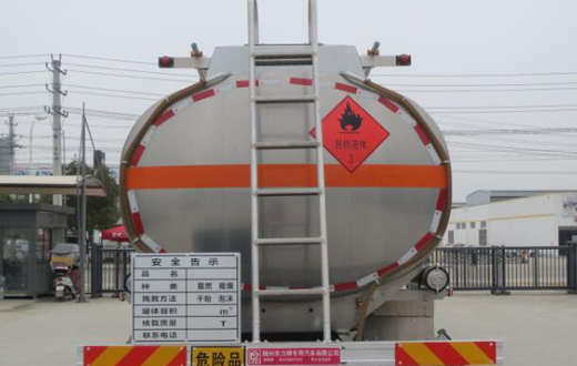 罐體有效容積:20.2立方米,危險貨物運輸車輛的類型為FL型,類項號:3;罐體尺寸(長×長軸×短軸)(mm)為:7350×2200×1600;僅采用4975+1400mm軸距;側、后防護裝置材料材質:Q235B,側、后防護均采用螺栓連接,后防護裝置斷面尺寸為(mm):80×150,后部防護離地高度:470mm;隨底盤選裝駕駛室;選裝炮筒樣式及工具箱樣式,選裝尾部帶出口箱.安裝具有衛星定位功能的行駛記錄儀,排氣管前置,安裝前輪盤式制動器和限速裝置,限速80km/h,僅采用底盤子午線輪胎;EBS系統控制器生產企業/型號為威伯科(上海)管理有限公司/EBS3;發動機型號及油耗值(L/100km)為:MC07.27-60(34.98),MC07.31-60(34.98),MC07.33-60(34.98),MC07.34-60(34.98),WP8.350E61(33.02),WP6H270E61(32.97),MC09.35-60(33.83),MC09.38-60(33.83),MC07H.29-60(33.79),MC07H.33-60(33.79),MC07H.35-60(33.79),WP7.270E61(33.03),WP7.300E61(33.03),MC11.40-60(33.1),該車后軸采用空氣懸架;轉向輪安裝爆胎應急防護裝置;該車型可選裝ETC車載裝置;
