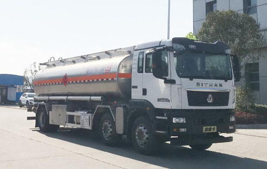 罐體總容量:24.7立方米,有效容積23.5立方米,危險貨物運輸車輛的類型為FL型,介質zui大密度700千克/立方米;罐體尺寸(長×長軸×短軸)(mm)為:7500×2500×1700;僅采用1800+5000mm軸距;側、后防護裝置材料材質:Q235B,側、后防護均采用螺栓連接,后防護裝置斷面尺寸為(mm):80×150,后部防護離地高度:400mm;隨底盤選裝駕駛室及前保險杠,選裝尾部無落水管及尾部帶出口箱;選裝箱門樣式及管箱樣式;安裝具有衛星定位功能的行駛記錄儀,排氣管前置,安裝前盤制動器和限速裝置,限速80km/h,僅采用底盤子午線輪胎;安裝EBS,EBS系統控制器生產企業/型號為威伯科(上海)管理有限公司/EBS3;采用發動機型號及油耗值(L/100km)為:25-60(33.9),MC07.27-60(33.9),MC07.31-60(33.9),MC07H.35-60(34.1),WP7H220E62(33.9),WP7H245E62(33.9),WP7H270E62(33.9),WP7H300E62(33.9),WP7H320E62(33.9);該車后軸采用空氣懸架;轉向輪安裝bao胎應急防護裝置;選裝直接供電式ETC車載裝置.